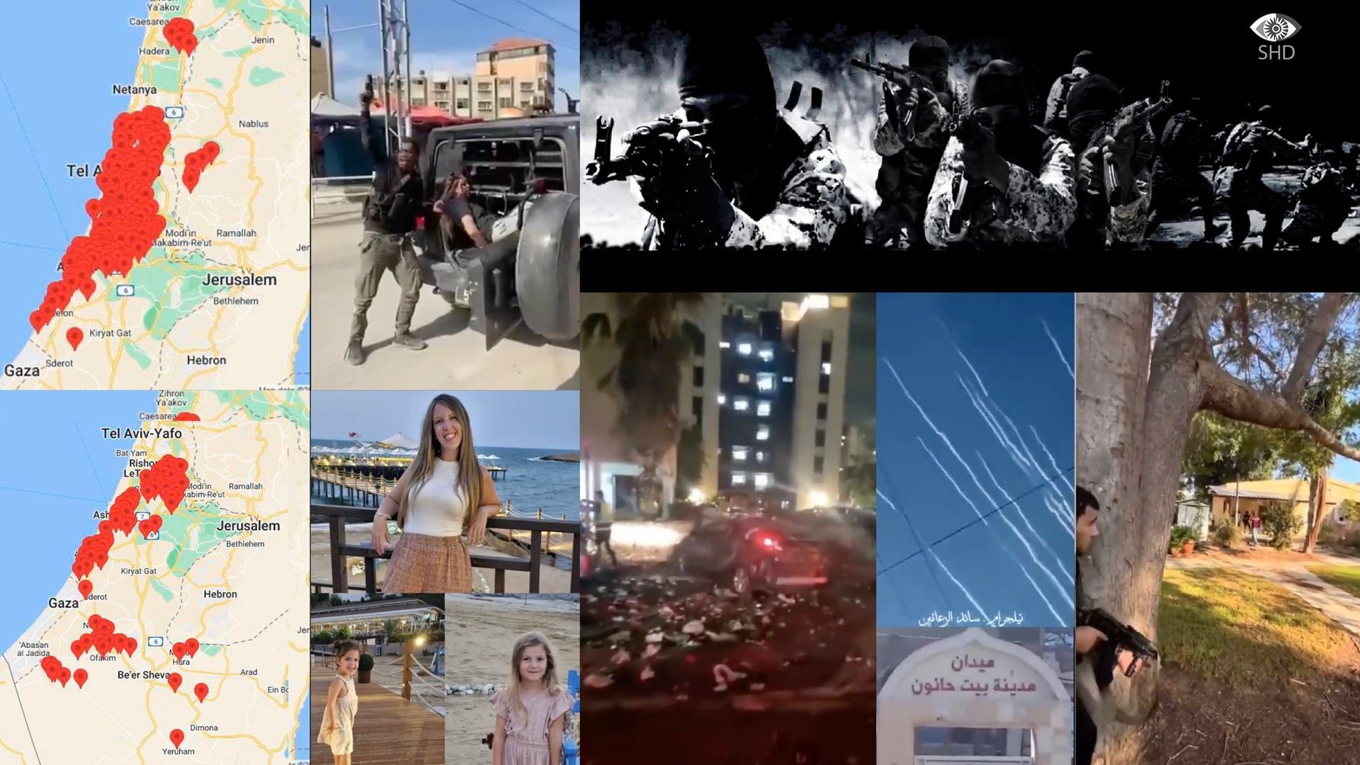Los últimos ataques yihadistas perpetrados a lo largo de este sábado, cometidos por islamistas palestinos integrados en la Brigada "Izz Al Din Al Qassam" (عزّ الدين القسّام) del Movimiento de Resistencia Islámica (Hamás / حّمّاس), se iniciaron durante la madrugada y a lo largo del día de hoy, 07 de octubre de 2023. Habiendo contabilizado, entre las 07:04h y las 19:14h, hasta un total de 185 impactos sobre el terreno de "cohetes Al Qassam" صَاروخ القَسام (un tipo de misil de fabricación propia, carente de instrumentos de guiado, pero con diferentes capacidades de carga explosiva que lo convierten en una poderosa arma rompedora, capaz de ocasionar un enorme impacto psicológico sobre la población civil).